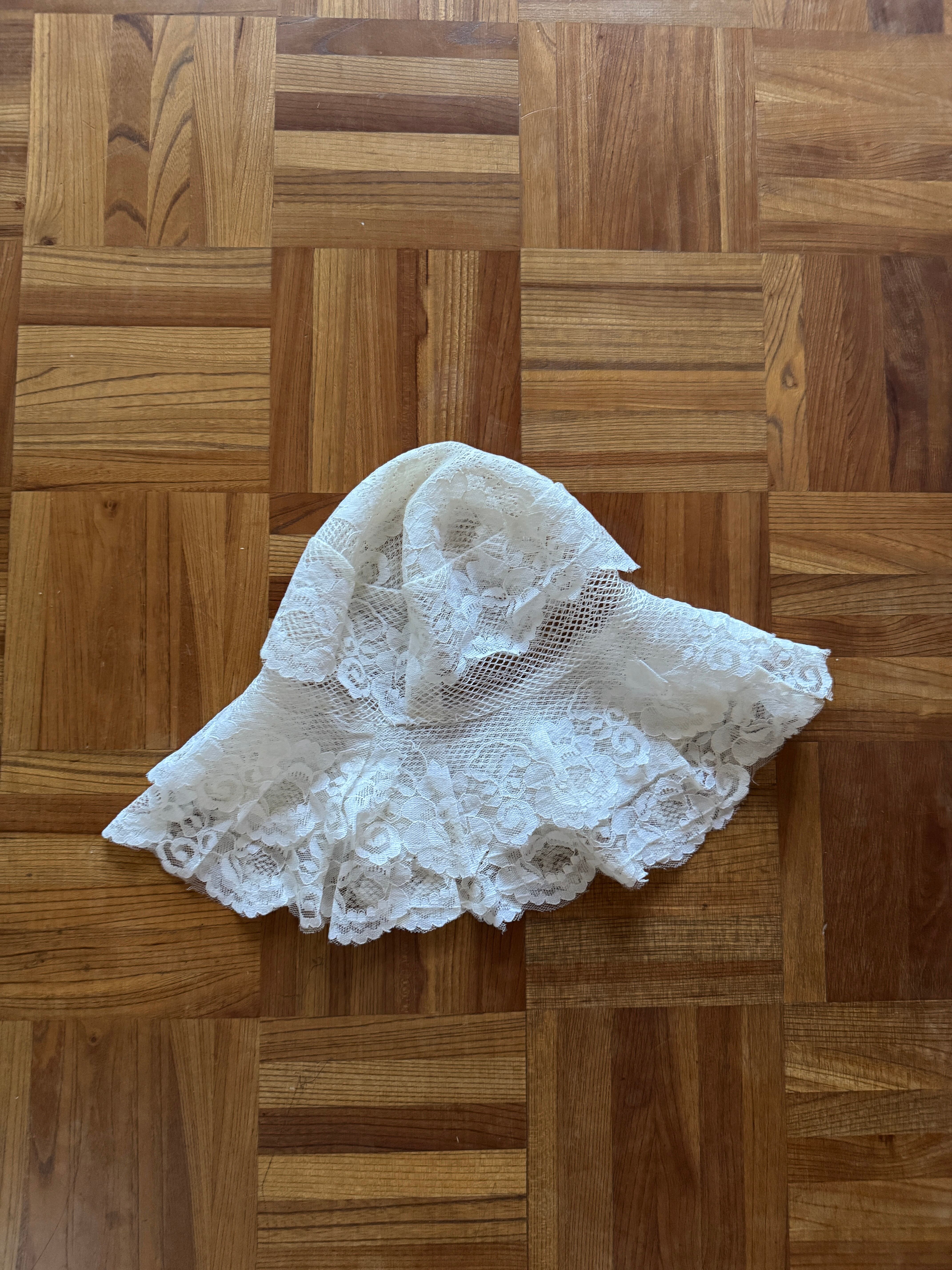 チュール生地に3段のお花レースが飾られた とてもロマンティックなヴィンテージハット。